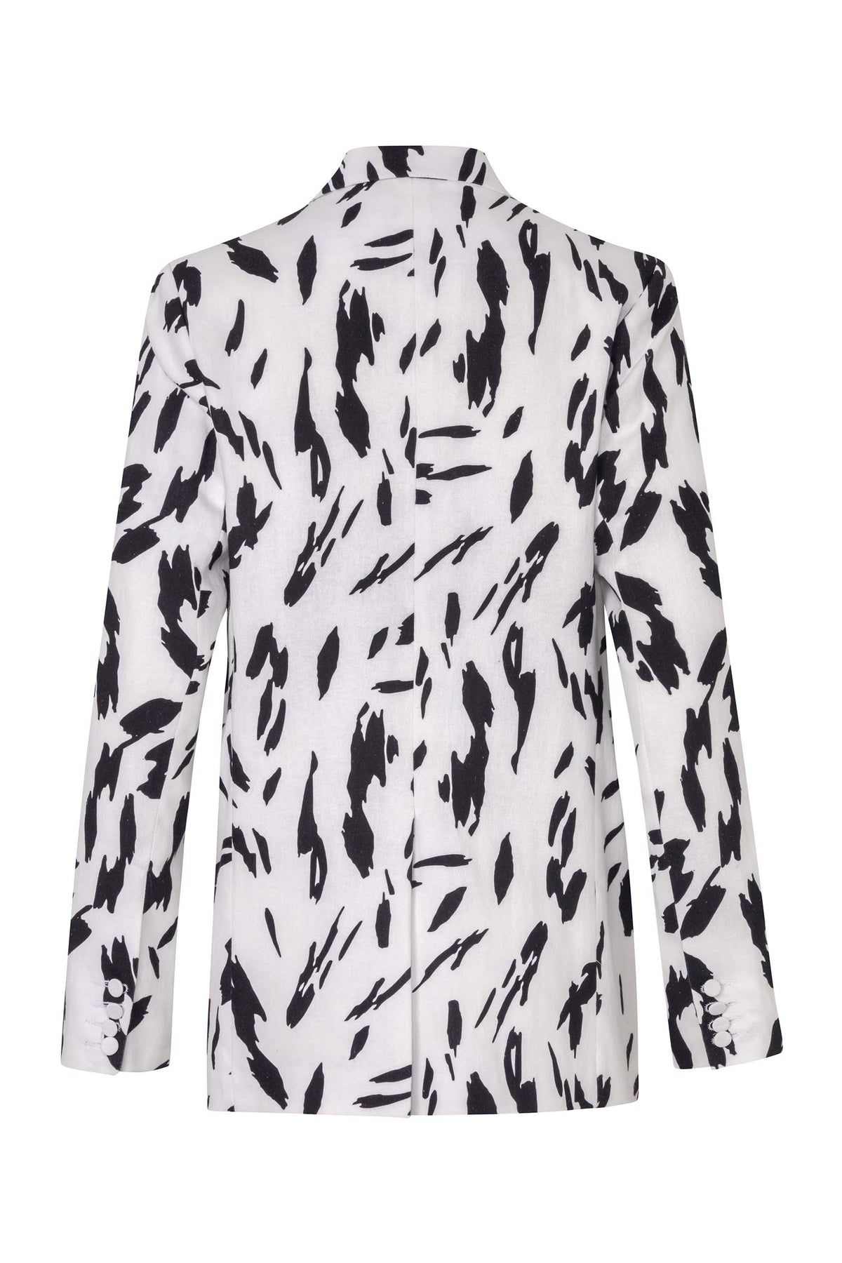 Blazer de corte clásico con estampado negro y blanco tipo dálmata, perfecto para combinar con nuestro pantalón Cruela o la falda Cruela. Elaborado en un 87% algodón y en un 13% lino lo cual lo hace una prenda fresca y ligera sin perder la horma. La modelo lleva una talla S y mide 1,75. Esta prenda es hecha en Colombia en condiciones de trabajo éticas.