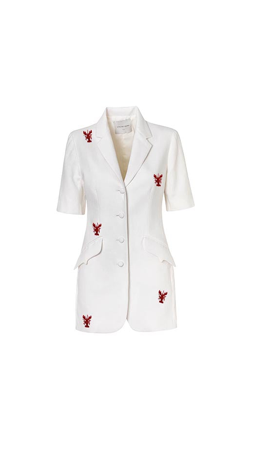 Blazer largo de corte clásico y manga corta, elaborado en una base textil de lino, con apliques de langostas. Esta pieza incorpora nuestro icónico bolsillo Crump, que además de elegante es funcional. Una prenda versátil, fresca y liviana que aporta sofisticación a tu look. La modelo lleva una talla S y mide 1,75. Esta prenda es hecha en Colombia en condiciones de trabajo éticas.
