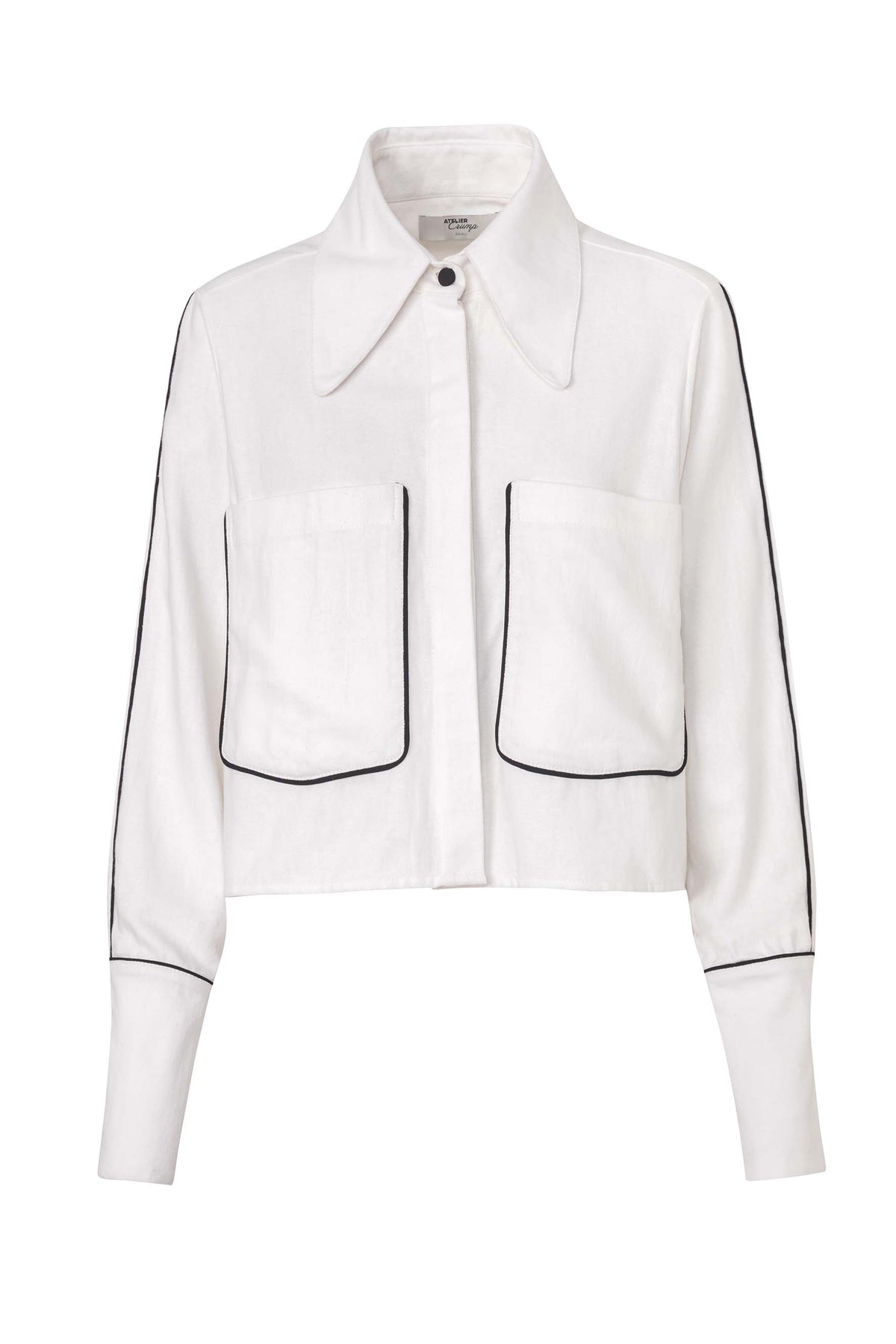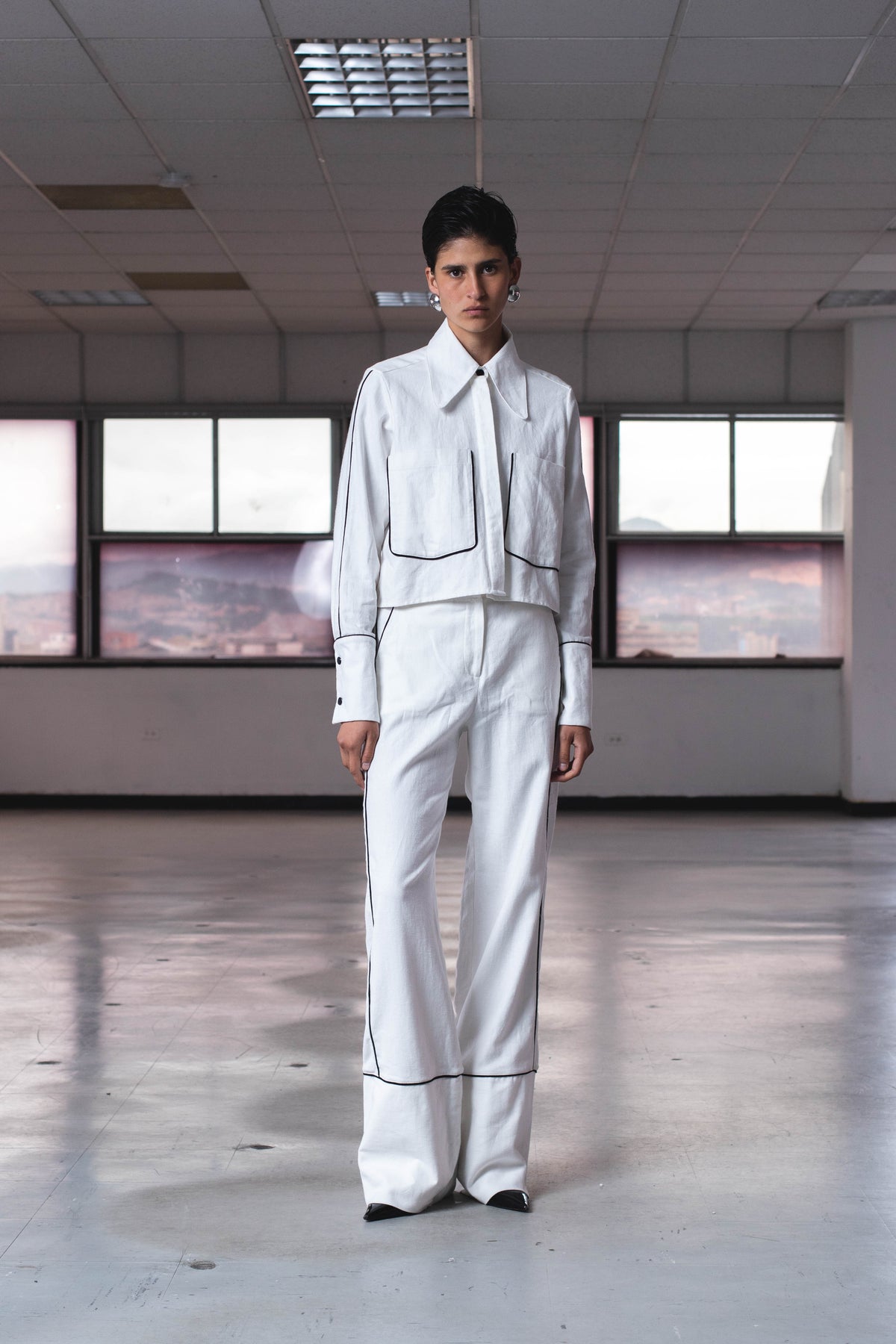 Camisa con embones color negro que resaltan y tiene el característico cuello de Atelier Crump lo cual la hacen una pieza statement. Es el set perfecto para nuestro pantalón Rosetta. Elaborada en 87% algodón y en un 13% lino, lo cual la hace suave al tacto y muy ligera. La modelo lleva una talla S y mide 1,75. Esta prenda es hecha en Colombia en condiciones de trabajo éticas.