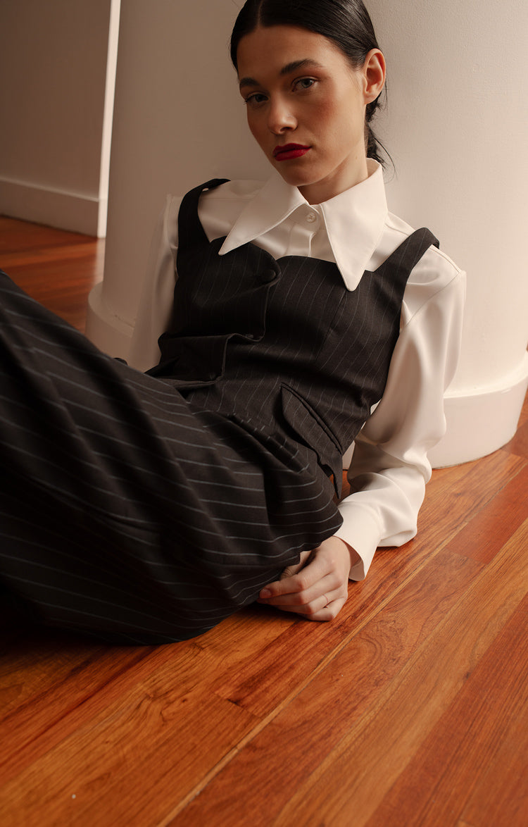 Chaleco elaborado en mezcla de lana virgen. Silueta ajustada, escote cuadrado, con bolsillos de tapa y botones forrados. Eleva cualquier look con éste clásico para tu armario. La modelo lleva una talla S y mide 1,73. Esta prenda es hecha en Colombia en condiciones de trabajo éticas.