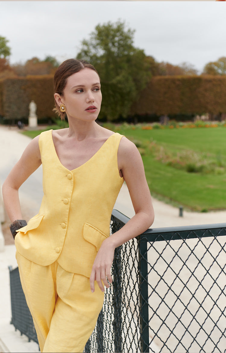 • 100% LINO, FORRO: 96% POLIÉSTER RECICLADO, 4% SPANDEX