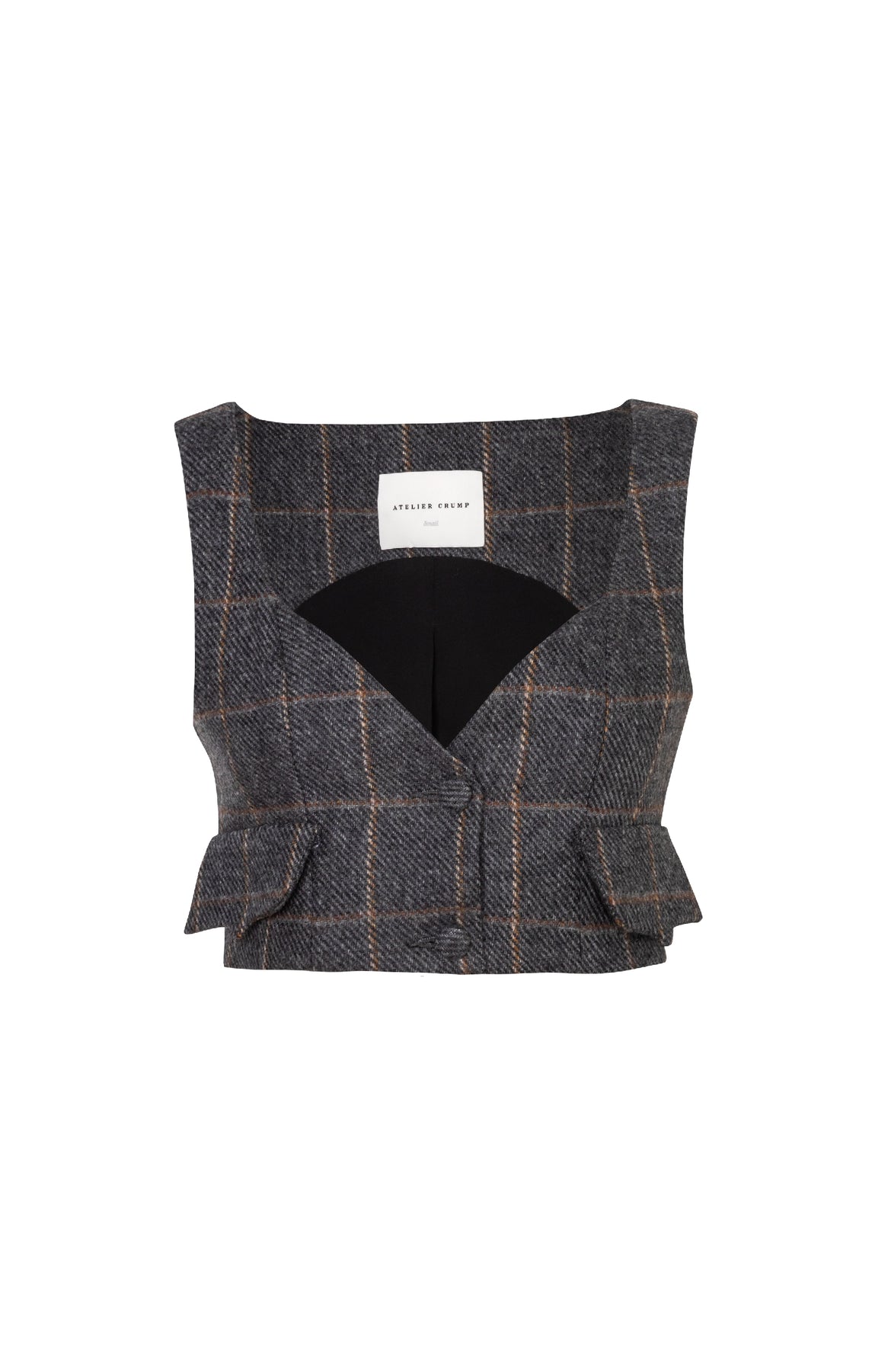 Chaleco corto entallado, elaborado en lana de origen italiano. Sus botones forrados y sus bolsillos Crump son sellos infaltables de la marca. Puede usarse como top, o sobre una camisa blanca para elevar el look. La modelo lleva una talla S y mide 1,75. Esta prenda es hecha en Colombia en condiciones de trabajo éticas.
