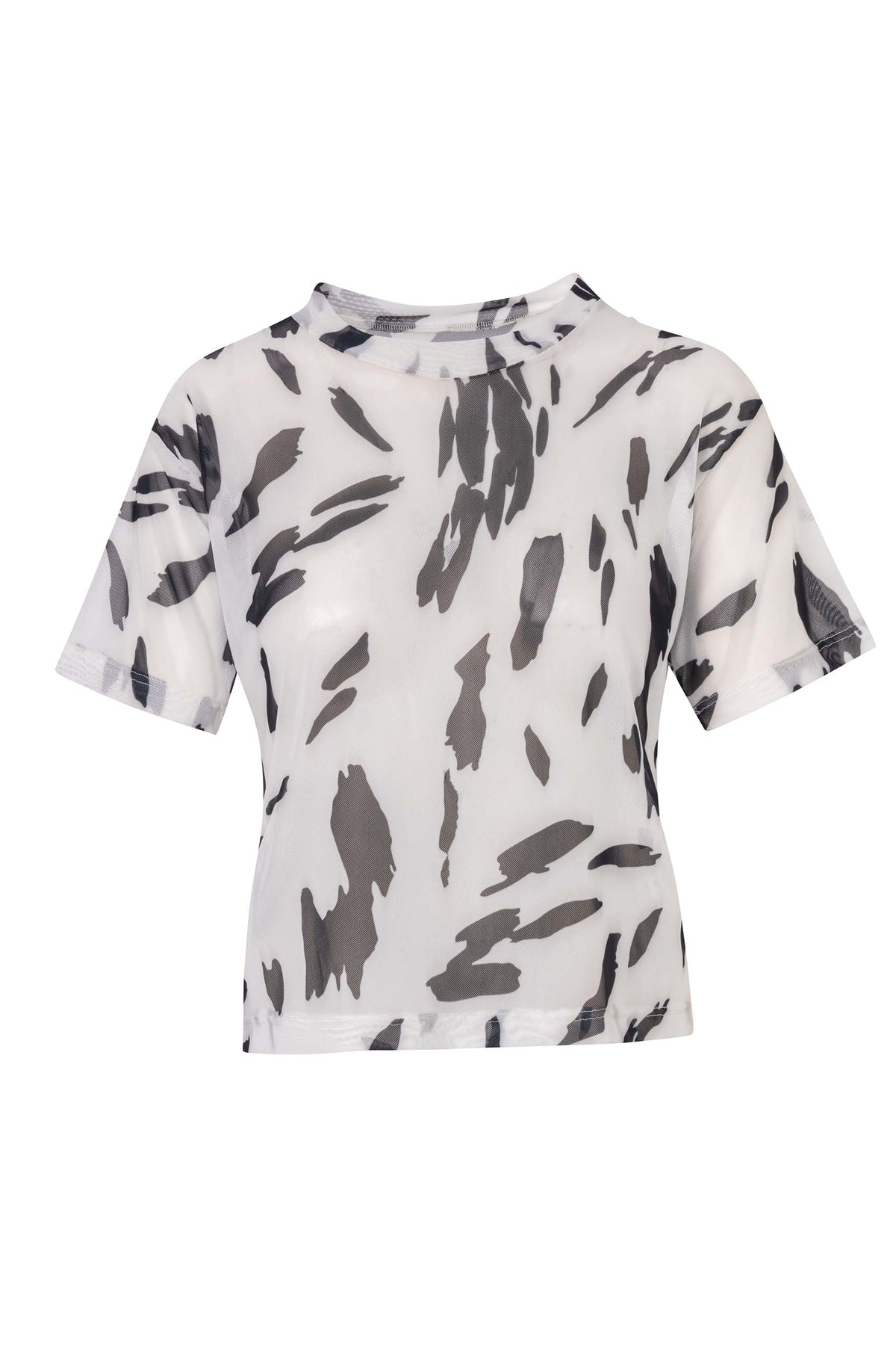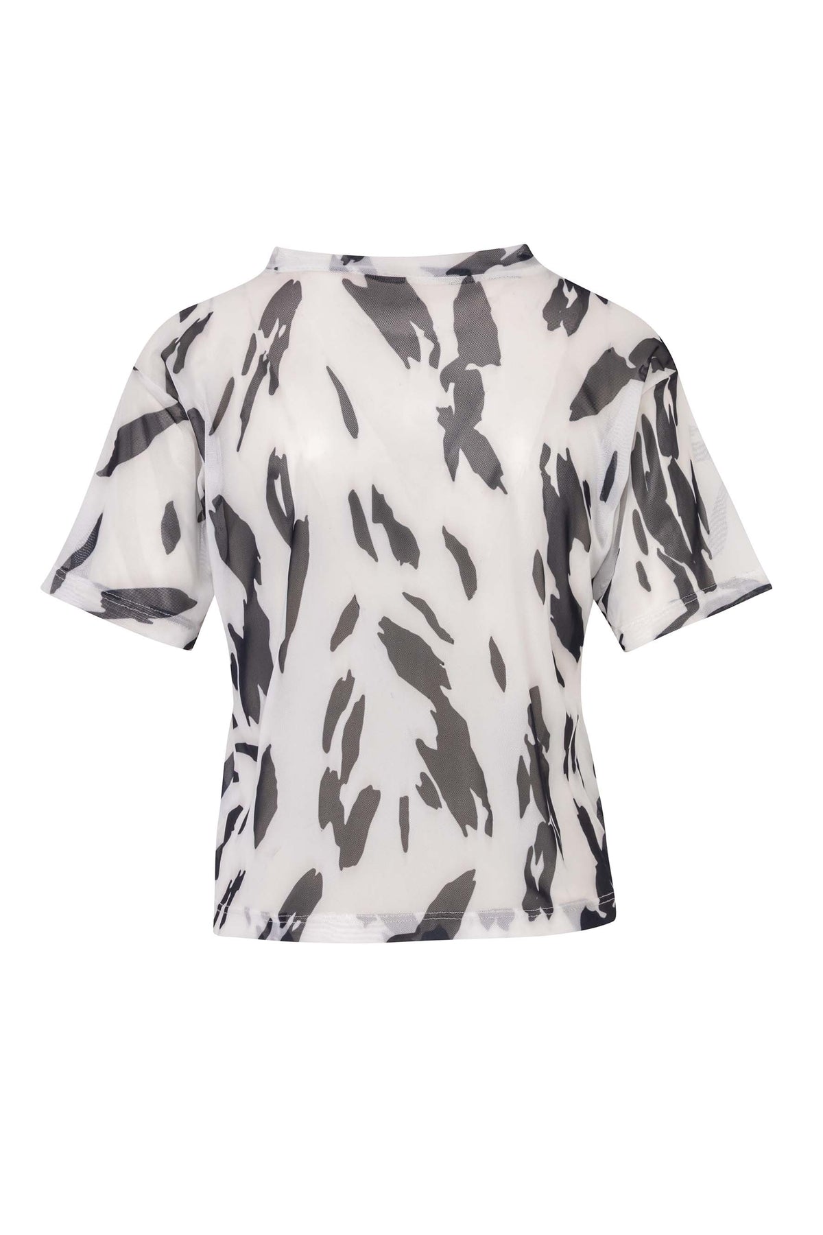 T-shirt Cruela con estampado negro y blanco tipo dálmata. Es una pieza tipo mesh transparente, lo puedes usar como un set o solo ya que es una prenda versátil y fácil de combinar. Elaborada en un 94% poliéster y 6% spandex. La modelo lleva una talla S y mide 1,75. Esta prenda es hecha en Colombia en condiciones de trabajo éticas.
