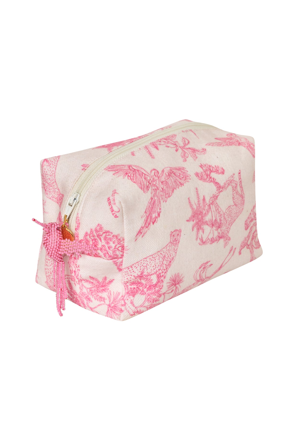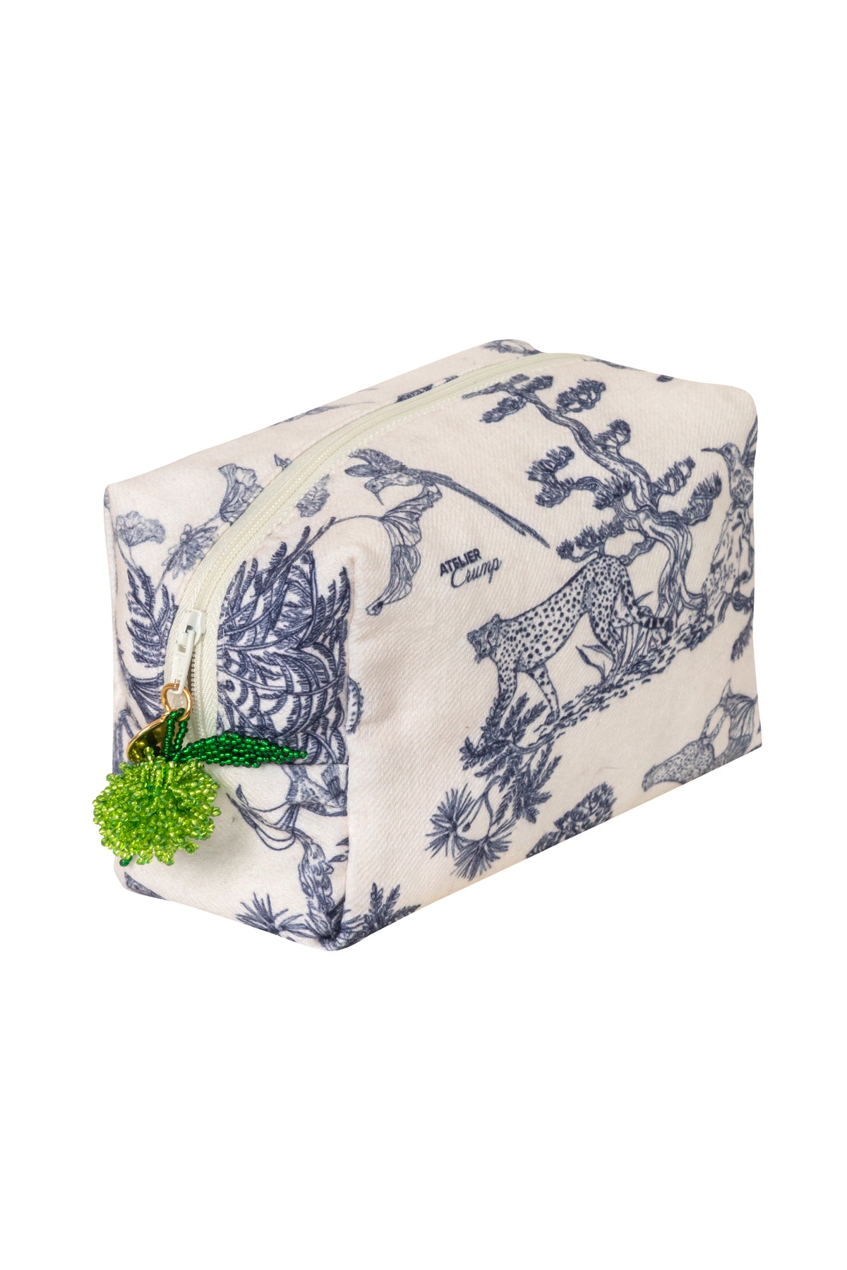 Cosmetiquera elaborada con retazos cuidadosamente seleccionados de la colección, con estampado en tigres sobre fondo negro. En la cremallera lleva un llavero elaborado por nuestras artesanas del Putumayo que le aporta un detalle único de origen artesanal.  Esta pieza es hecha en Colombia en condiciones de trabajo éticas.
