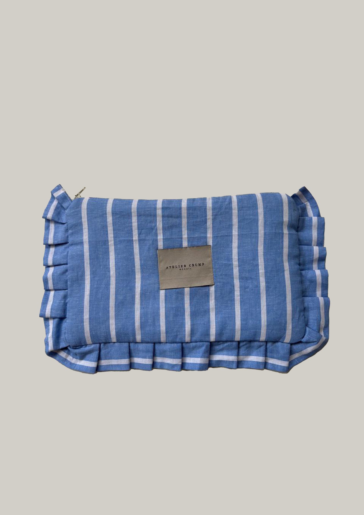 Cosmetiquera de gran formato confeccionada con retazos de tela de la marca, diseñada para dar nuevo propósito a los excedentes textiles. Cuenta con una estructura acolchada, los pliegues laterales, forro interior y un cierre superior aseguran funcionalidad y resistencia.