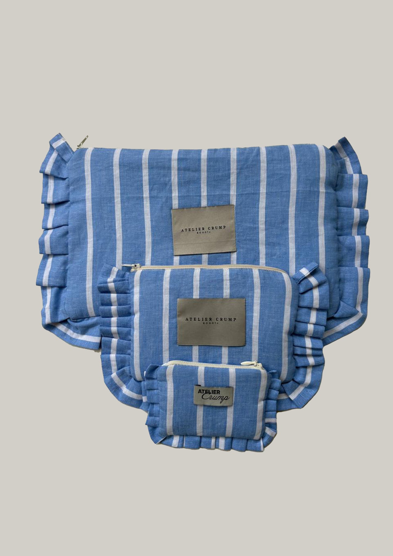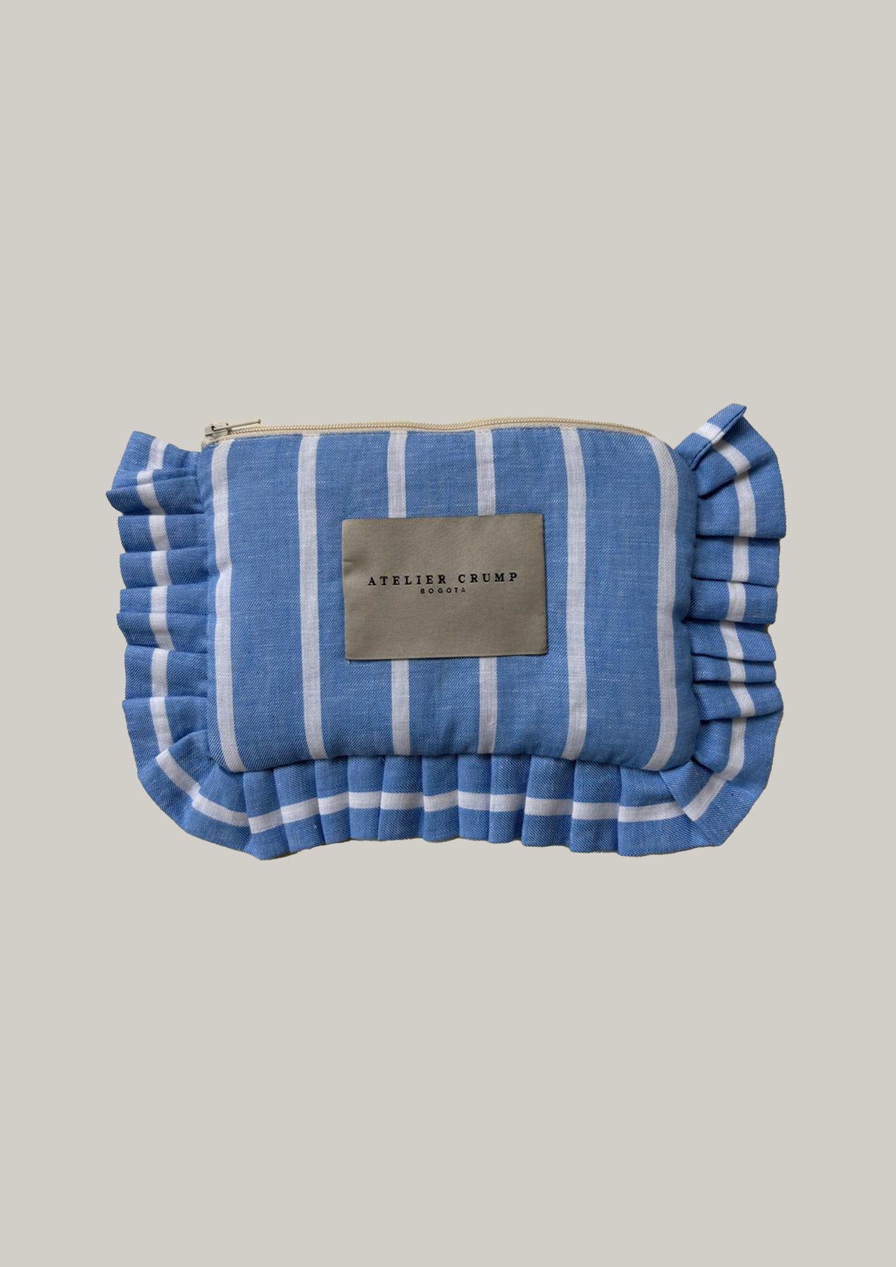Cosmetiquera confeccionada con retazos de tela de la marca, pensada para dar nuevo propósito a los excedentes textiles. Su diseño presenta una estructura acolchada y delicados prenses laterales que realzan su carácter artesanal. Con cierre superior y forro interior, ofreciendo practicidad.