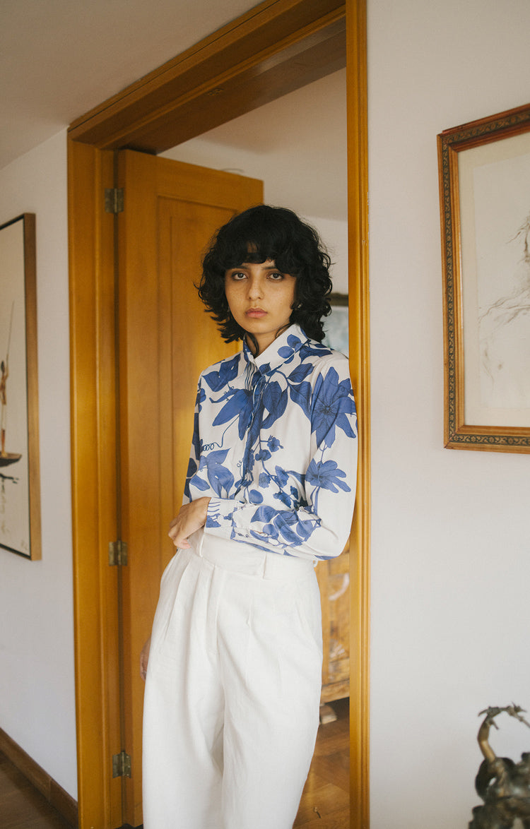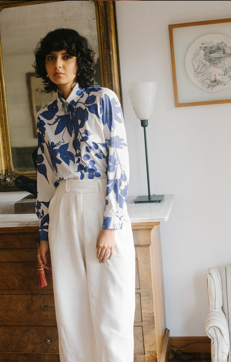 Pantalones anchos con prenses, ribete trensado en los bolsillos. Combina el tuyo con nuestro blazer carla cotton linen para un look monocromático. La modelo lleva una talla S y mide 1,76. Esta prenda es hecha en Colombia en condiciones de trabajo éticas.