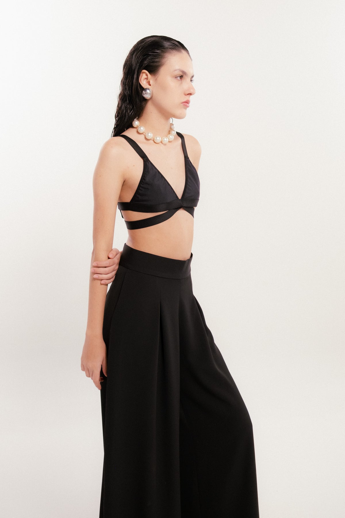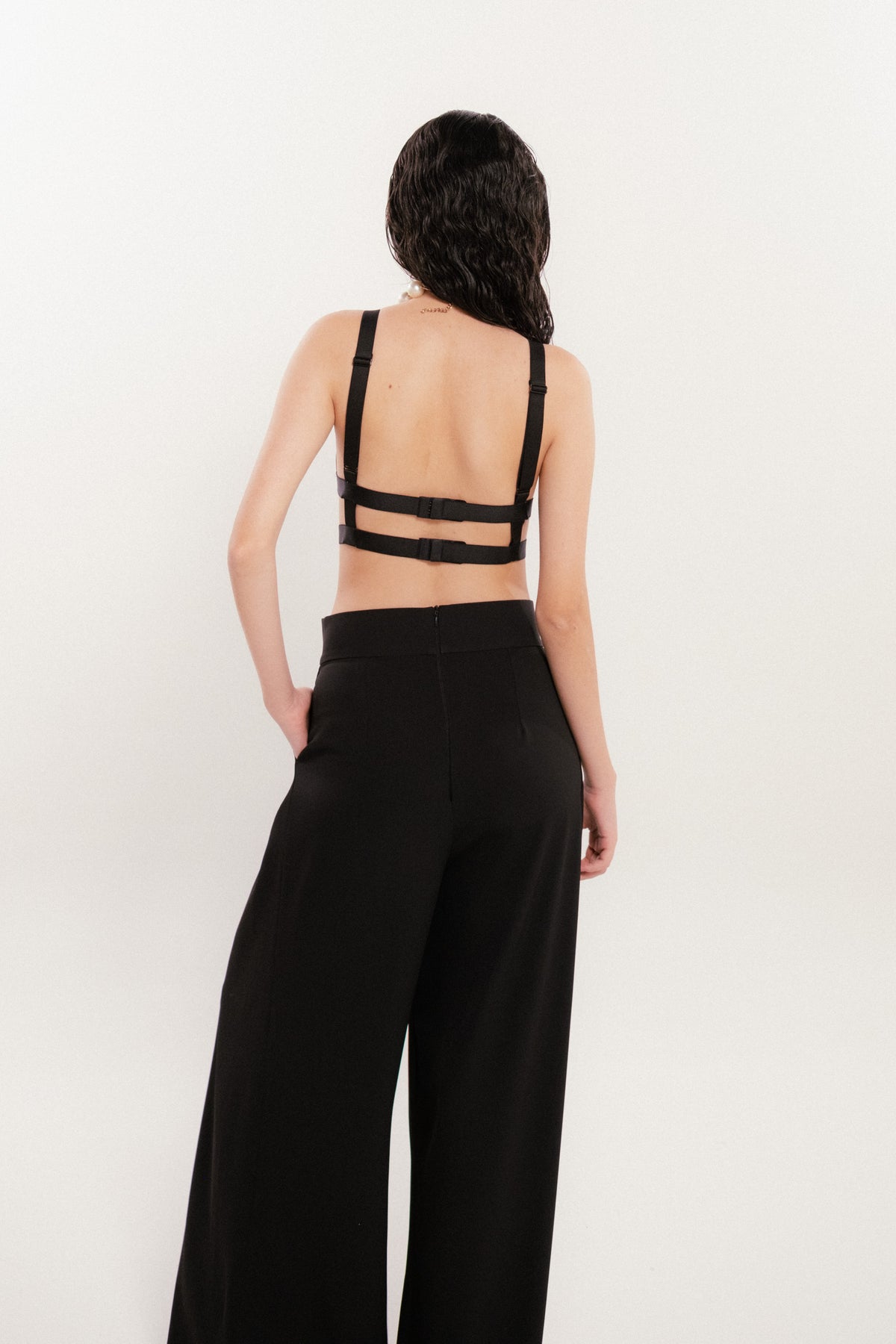 Top de diseño contemporáneo con detalles únicos que lo convierten en una prenda versátil y sofisticada perfecto para elevar el look al usar transparencias. . La modelo lleva una talla S y mide 1,75. Esta prenda es hecha en Colombia en condiciones de trabajo éticas.